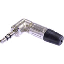 Mini-jacks 3,5mm 3 points coudés à corps métallique, avec guide câble à capuchon pour une rétention solide du câble. Accepte les câbles de 2,0 à 4,5mm de diamètre. Disponible avec corps et contacts en plaqué nickel (NTP3RC), avec corps noir et contacts or (NTP3RC-B).