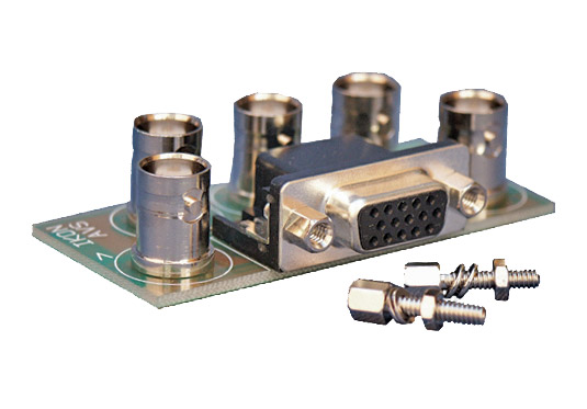 Monter un connecteur standard Sub-D 15 broches haute densité (“HDD15”) sur des câbles vidéo installés a longtemps été un problème, même avec un câble de 3mm de diamètre et reste quasiment impossible avec des câbles de plus de 6mm. Cette gamme d'adaptateurs fractionne le connecteur HDD en cinq prises BNC 75 ohms, isolées électriquement, suffisamment espacées pour brancher les fiches BNC conventionnelles sans outil spécialisé. Des masses indépendantes sont maintenues pour que l'adaptateur ne dégrade pas le signal de chacun des trois canaux vidéo et des synchros. L'adaptateur se monte sur le panneau par des vis d'accouplement allongées (fournies). Une liaison amovible sur le circuit imprimé fournit le recueil de données requis par certains ordinateurs portables pour indiquer la connexion d'un moniteur externe, simplifiant la communication bidirectionnelle automatique à la connexion.