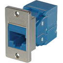 Gamme de connecteurs au format "Keystone", montés dans des adaptateurs métalliques pour panneau à finition nickel satiné.