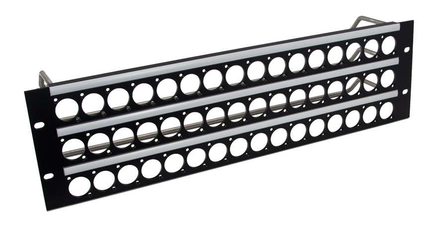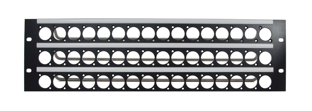 Fabriqués en profilé d'aluminium léger mais extrêmement rigide, ces panneaux 1U d'une rangée, 2U de deux rangées et 3U de trois rangées sont disponibles avec 8, 12 or 16 découpes par rangée pour monter une large variété de composants dont les connecteurs de la série "Universal" Canford et les connecteurs à corps Neutrik de série "D". Dans le cas d'installations avec des connecteurs à corps plus volumineux, comme par exemple les Neutrik Speakon, une version, proposant l'espace nécessaire entre les connexions, à 12 découpes est disponible. Lorsque que moins de canaux sont requis et pour éviter le montage de plaques d'opturation des ports non utilisés, une version 1U avec 8 découpes est proposée, avec une répartition régulière des connecteurs fournissant un espace maximal pour l'identification.