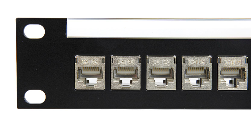 Gamme de panneaux entièrement équipés de prises RJ45 CAT5E blindées traversantes (aussi nommées double face ou dos-à-dos), permettant de patcher un système et de facilement connecter un équipement portable ou externe. Ils sont tous dotés, en standard, d'un insert papier imprimable, d'un porte légende à pression ainsi que d'une barre fixe-câbles.