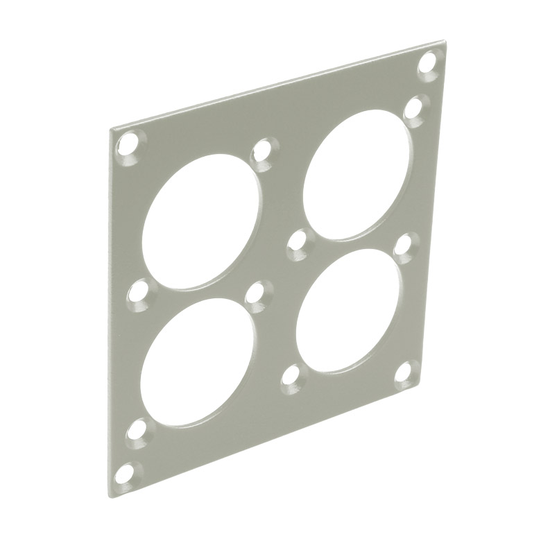 • Les plaques "Universal" conviennent à tous les connecteurs de la gamme D Neutrik, aux connecteurs de la gamme "Universal" Canford et aux autres connecteurs de taille similaire. L'Opticalcon Neutrik tient, complet avec son capuchon d'étanchéité, dans la plaque Universal à simple trou (il est trop grand pour tenir dans les plaques à deux ou quatre trous).