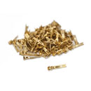 Les contacts sont les mêmes pour les fiches et les embases, de type à souder ou à sertir et sont livrés avec un morceau de fil a wrapper ou une broche pour C.I. A noter qu’un fil 1/0,5 mm devra être replié avant sertissage pour assurer une bonne prise.