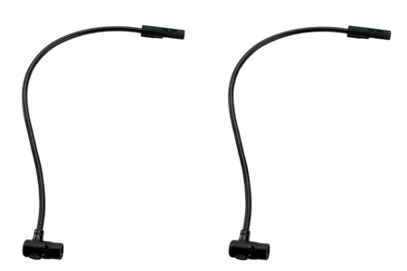 Lampes col de cygne standard 18XR-4-LED terminées d’une XLR coudée pour un branchement à droite ou à gauche, selon l’orientation des broches.