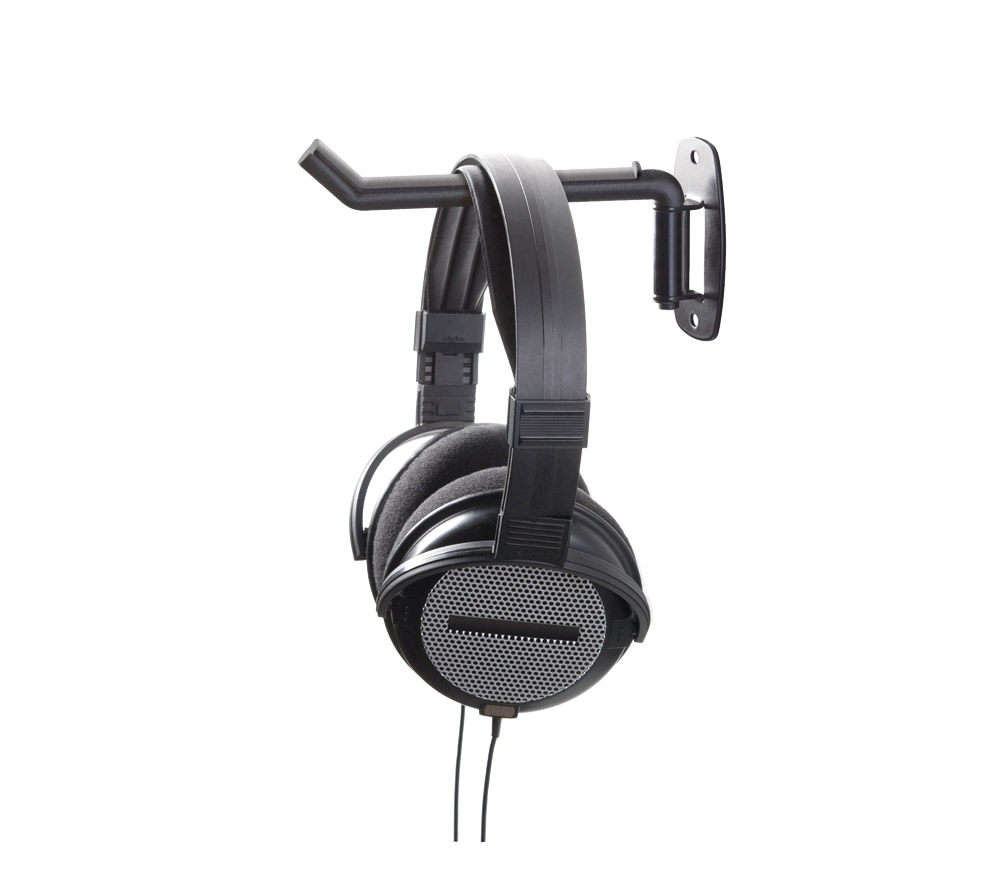 Un support de casque en acier peint par poudrage conçu pour être fixé à un mur ou à une surface verticale. Il dispose de deux emplacements pour casque de type intra-auriculaire ainsi que d'un bras principal 74x36mm (prof. x larg.) pour les écouteurs de type casque. Poids : 0.097kg