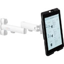 Support pour tablettes avec adaptateur QuickFix pour bras haut-parleurs Mika. Les prises du support peuvent être ajustées afin de convenir à plusieurs tailles de tablettes.