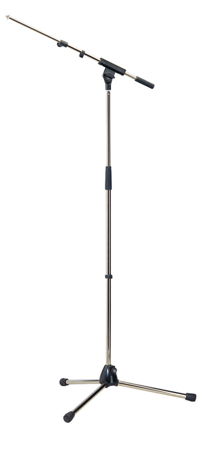 Pied micro économique, hauteur réglable, perche en un seul morceau de 680mm, fixée par bouton de verrouillage. Base en plastique et pieds pliables. Hauteur de 890 à 160mm. Poids 1,84kg. Finition noir.
