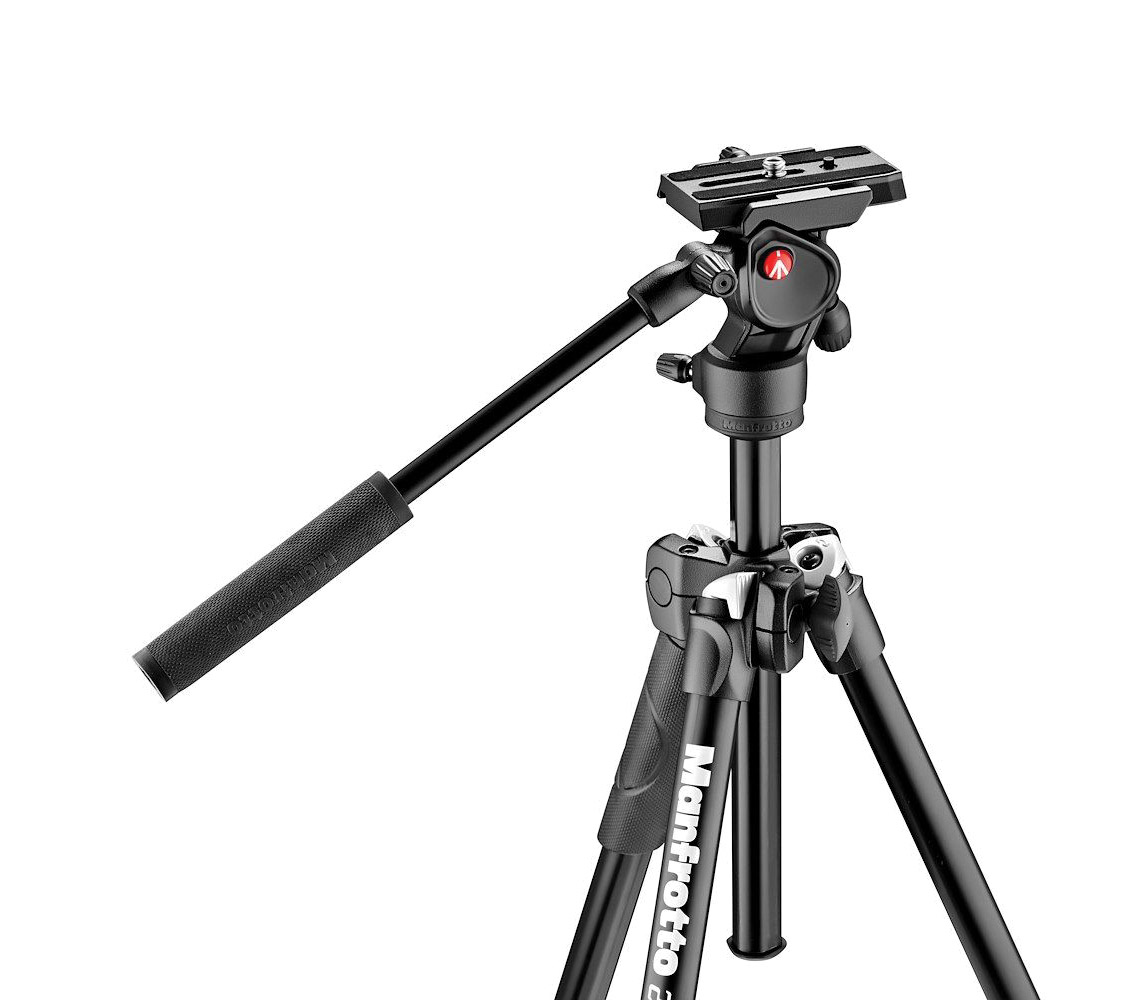 La plaque 200PL-PRO incluse est compatible avec les fixations de tête Manfrotto de type RC2 et Arca-Swiss, tandis que le support de plaque est également compatible avec la plaque vidéo 501PL. La hauteur maximale du trépied est de 151 cm avec la colonne centrale au maximum, et sa longueur fermée est de 40 cm. Poids : 2 kg.