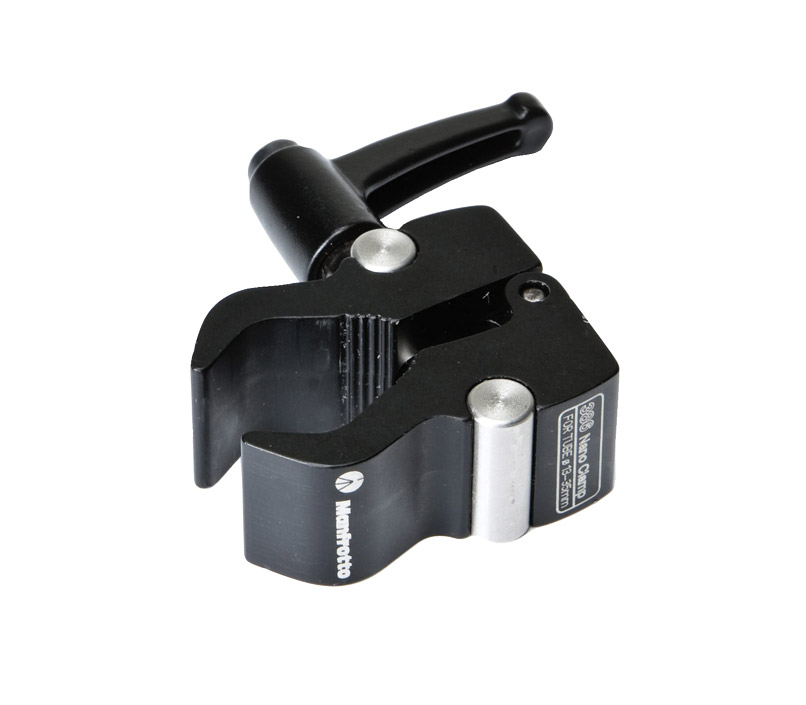 Une sélection de pinces Manfrotto conçues pour faciliter le positionnement d'accessoires tels que les microphones, les réflecteurs, les caméras d'action, les accessoires ou les têtes de flash photographiques.