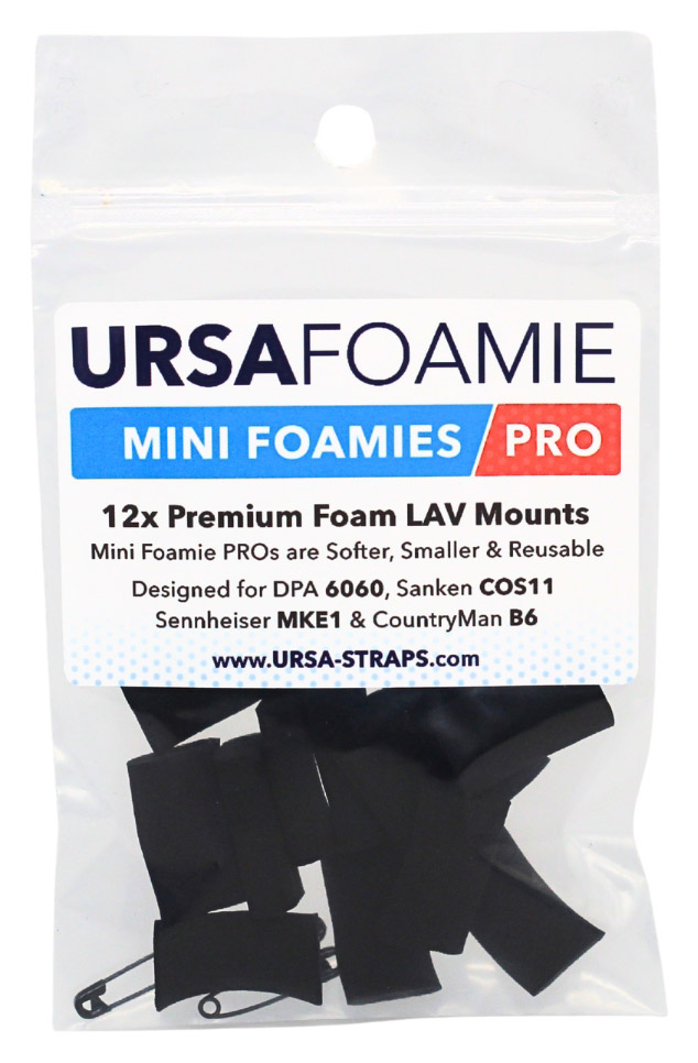 Les Mini Foamies URSA ont les mêmes caractéristiques et la même utilisation que les Foamies URSA, mais comme leur nom l'indique, ce sont des versions mini. Les Mini Foamies mesurent 22 mm de long, 14 mm de large et 7 mm de haut, mais ils peuvent aussi être coupés sur mesure. Le diamètre du trou est de 1,5 mm, extensible à 4 mm, et il est compatible avec les microphones, notamment le DPA 6060/6061, le Sanken COS11 et le Sennheiser MKE1.