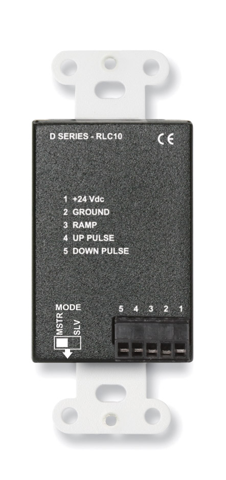 Disponible en blanc (D-RLC10), noir (DB-RLC10) et acier inoxydable (DS-RLC10), cet appareil de contrôle permet à l'utilisateur de régler le niveau à un ou plusieurs endroits. Le contrôleur rotatif continu utilise un codeur en option et est compatible avec les équipements RDL VCA ou OEM qui ont des entrées de rampe 0-10Vcc. Jusqu'à neuf contrôleurs RLC10 peuvent être câblés en parallèle avec la commande maître par un câble CAT5/6 UTP. Un commutateur sur le panneau arrière permet à l'utilisateur de basculer entre les modes 'maître' et 'esclave'. Rampe : 0-10Vcc. Rotations (approximativement du minimum au maximum) : 5, rotation lente, pas d'accélération ; 3, rotation moyenne, avec accélération ; 1, rotation rapide dans le sens antihoraire. Alimentation : 24Vcc à 50mA, masse référencée. Poids : 122.5g
