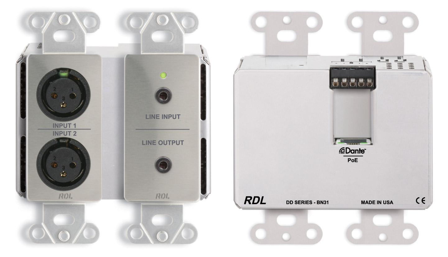 RDL DDS-BN31 DANTE AUDIO INTERFACE Bi-directional, 4x4, 2x XLR/3.5mm jack in, stainless steel