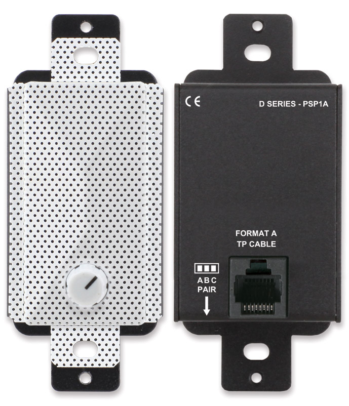 Disponible en blanc (D-TPSL1A), noir (DB-TPSL1A) et acier inoxydable (DS-TPSL1A), cet émetteur actif à deux paires offre une entrée stéréo et se combine afin de fournir une sortie mono. Une LED bleue positionnée sur le panneau avant permet à l'utilisateur d'identifier l'état de mise sous tension. L'alimentation à distance se fait via un câble à paire torsadée et une connexion RJ45.