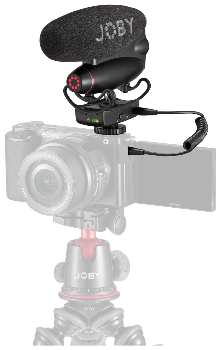 Sélection de microphones à condensateur compacts Joby Wavo, destinés aux vidéastes et adaptés aux appareils photo sans miroir ou DSLR. Ces microphones de caméra sont directionnels, avec une directivité supercardioïde, et peuvent être fixés à un appareil photo au moyen d'un adaptateur de sabot froid.