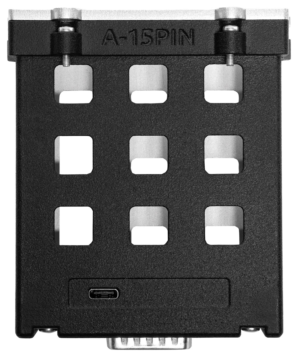 La face avant présente quatre écrans tactiles OLED en couleur permettant le contrôle et la surveillance. Ces écrans tactiles peuvent être verrouillés pour empêcher toute manipulation non autorisée, mis en mode économiseur d'écran pour éviter les surchauffes ou être désactivés. Un bouton triangulaire multifonctionnel permet d'allumer et d'éteindre l'appareil et de changer l'affichage de l'écran. Une molette permet de contrôler et de sélectionner les menus, et une LED circulaire multicolore indique les états d'alimentation, de synchronisation et de verrouillage. Les entrées d'antenne A et B sont proposées sur des connecteurs BNC, compatibles avec des antennes actives, passives ou intelligentes.