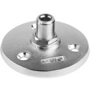 Suspension élastique antichocs pour microphones à col de cygne avec connecteur XLR mâle. Un manchon cylindrique noir se monte par affleurement, au travers d'une table ou d'une surface, à l'aide d'un écrou sur le corps fileté du manchon, pour donner une ouverture intérieure à suspension antichocs au travers de laquelle est poussé le col de cygne. La connexion se fait alors avec le câble XLR femelle.
