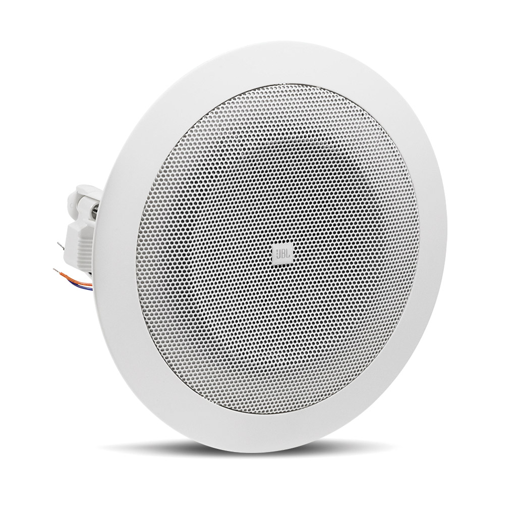 Une sélection d'enceintes à dos ouvert JBL à monter au plafond qui peuvent être utilisées dans le cadre de systèmes musicaux dans les cafés, les magasins, les aéroports et les hôtels, mais aussi comme systèmes d'appel dans les salles réceptions, salles d'audience ou salles d'attente.