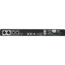 Le panneau arrière présente une connectivité E/S comprenant deux sorties analogiques symétriques sur XLR 3 points, une connexion Ethernet RJ45 pour la gestion de l'unité, une E/S SDI 1 sur BNC, une E/S SDI 2 sur BNC et une cinquième connexion BNC pour la sortie SDI sélectionnée. La connexion au réseau est assurée par une entrée de type IEC. Le panneau frontal comporte une connexion USB pour la mise à jour du logiciel et le transfert de données, ainsi qu'une sortie casque jack 6,35 mm avec contrôle du volume. L'amplificateur de classe D permet aux haut-parleurs intégrés de produire 5 watts RMS par côté, 12 watts en crête.