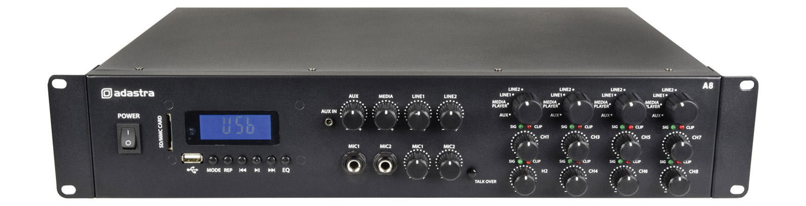 Une gamme d'amplificateurs de sonorisation Adastra dotés de fonctions de mixage et de gestion par zones. Les amplificateurs de cette gamme intègrent des fonctionnalités telles que la réception radio FM, la lecture de fichiers via USB ou carte SD et la connexion Bluetooth.