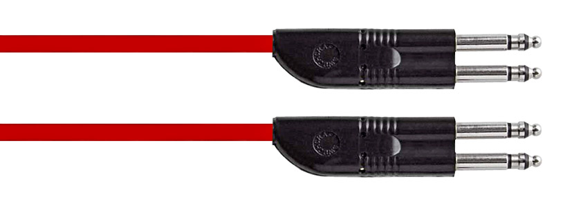 Les cordons de patch "stéréo" ont une double fiche qui convient à l'emploi avec la plupart des patches à "espacement stéréo", et utilisent un câble à conducteurs jumeaux et double blindage.
