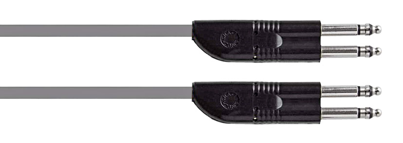 Les cordons de patch "stéréo" ont une double fiche qui convient à l'emploi avec la plupart des patches à "espacement stéréo", et utilisent un câble à conducteurs jumeaux et double blindage.