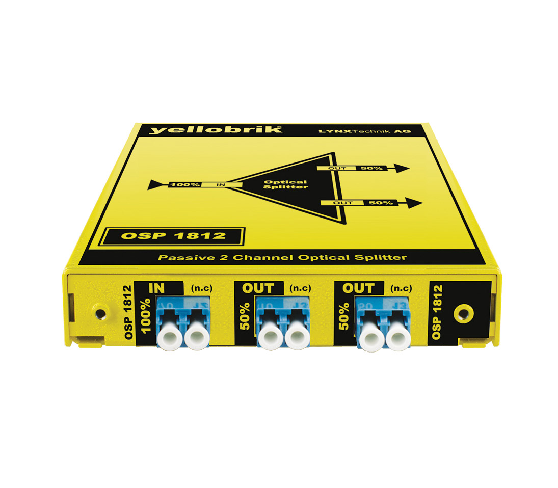 La gamme yellobrik de LYNX Technik comprend des répartiteurs fibre optique passifs qui offrent une méthode économique pour distribuer des signaux par fibre optique. Il existe trois modèles qui répartissent la puissance de sortie dans la plage optique, de 1260 nm à 1650 nm, selon différents rapports.