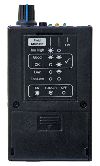 Identique au récepteur de boucle standard ILR3 mais avec l'ajout de deux voyants LED pour indiquer si la puissance du signal se trouve dans la plage définie par IEC60118-4: 2006.