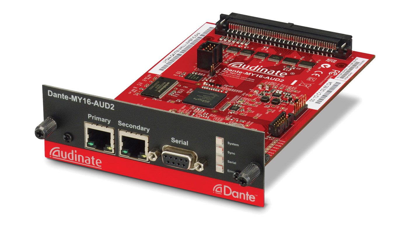 Carte interface qui permet à une console de mixage, un processeur ou un ampli de puissance compatible Yamaha de communiquer via Dante. MY16-AUD2 fournit seize canaux audio bidirectionnels avec une redondance audio complète, supportant des fréquences d'échantillonnage de 44,1, 48, 88,2, et 96kHz.