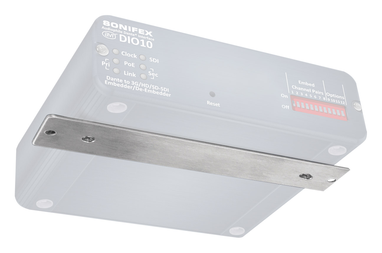 Étagère rack 19 pouces, 1U, conçue pour accueillir plusieurs interfaces DIO en toute sécurité. Jusqu'à 5 interfaces DIO01-09, ou jusqu'à 3 interfaces DIO10, peuvent tenir dans les limites de l'étagère. Le kit comprend les fixations des interfaces DIO.