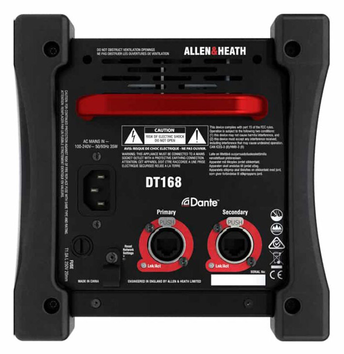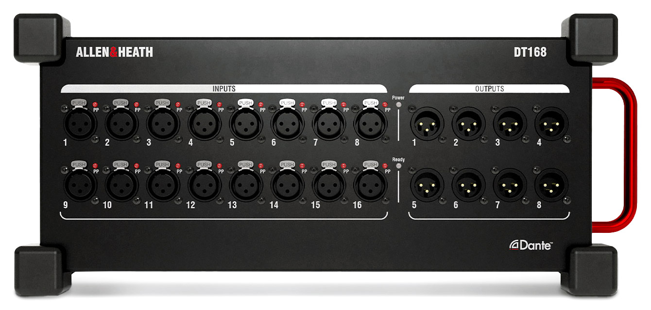 ALLEN & HEATH DT168 DANTE INTERFACE Portable, 16x inputs, 8x outputs, 3-pin XLR connectionsALLEN & HEATH DT168 DANTE INTERFACE Portable, 16x inputs, 8x outputs, 3-pin XLR connections