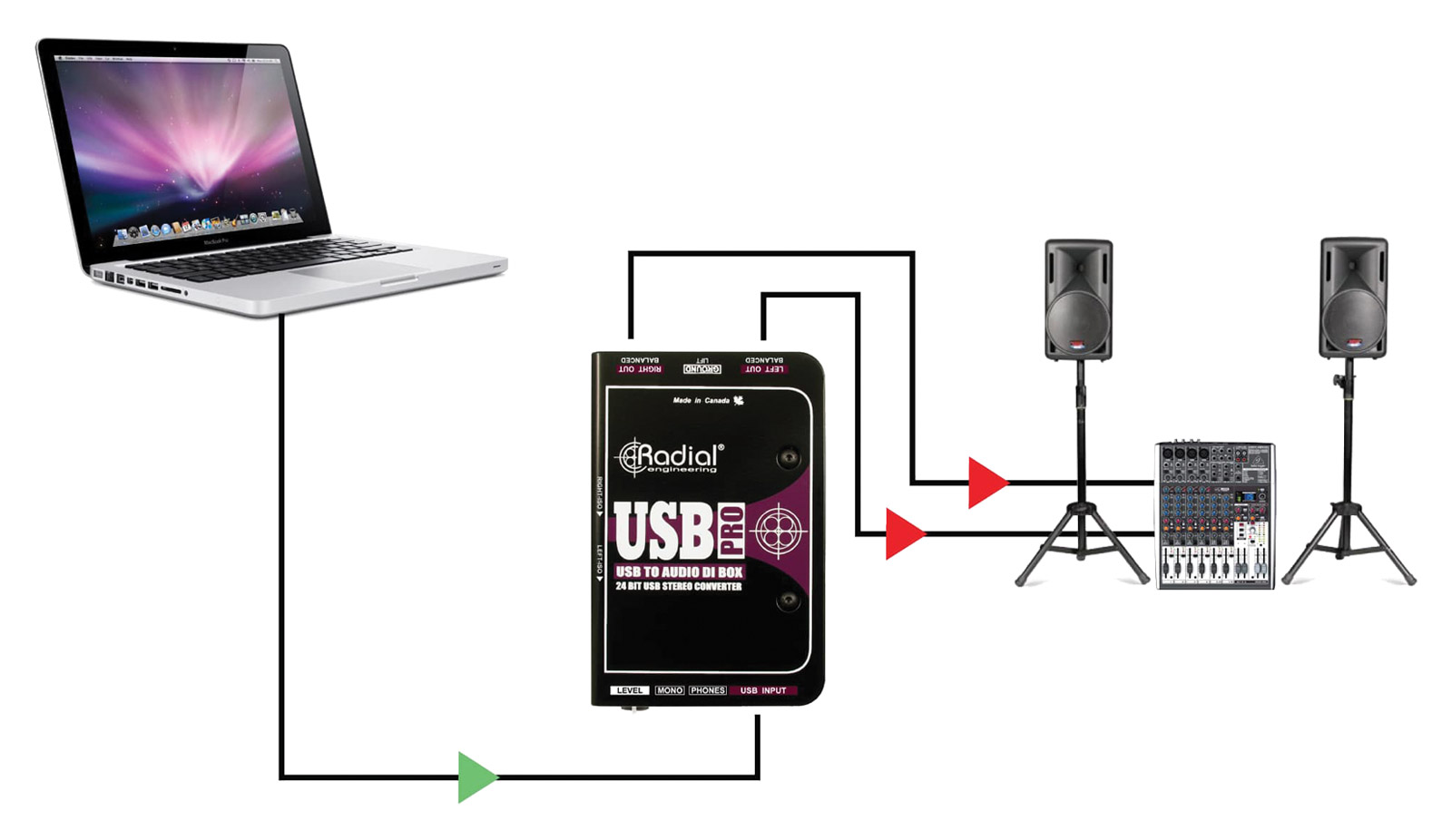 La USB-Pro de Radial est une boîte de direct et un convertisseur audio numérique-analogique 24 bits plug and play dans un châssis compact et résistant à la route. Un préampli intégré permet à l'utilisateur d'ajuster le niveau de sortie du niveau micro au niveau ligne, et permet à l'USB-Pro de se connecter directement aux consoles de mixage, aux amplificateurs de puissance et aux haut-parleurs auto-alimentés. La USB-Pro est alimentée par la connexion USB et configure automatiquement la fréquence d'échantillonnage et la profondeur de bits sans nécessiter de pilotes spéciaux. La USB-Pro peut également servir à tester des systèmes et à transférer des fichiers audio numériques vers un système analogique en vue de leur traitement.