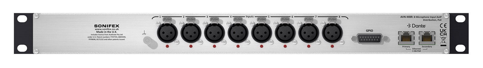SONIFEX AVN-M8R DANTE AUDIO INTERFACE 8x mic/line input, dual PoE, Dante, 1U Code stock : 95-5960