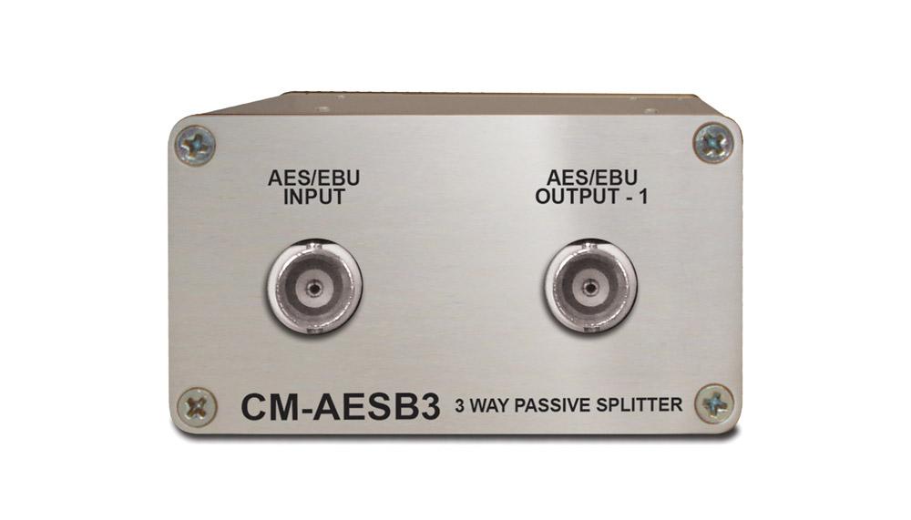 Le CM-AESB3 est un splitter 1:3 passif qui permet la dispersion d’une source numérique AES3ID sur une entrée BNC (jusqu’à 3). Il ne nécessite pas de source d’alimentation pour fonctionner, ce qui s’avère très pratique dans les productions vidéo et de transmission radio/télévision.