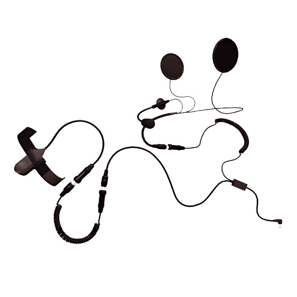 Système de microphone développé pour transmettre d'une moto à l'autre à l'aide de n'importe quel type d'émetteur-récepteur câblé "standard", mais pouvant aussi servir dans des applications théâtrales et dans des parcs d'attractions. Le système se compose de deux écouteurs ultra-plats qui peuvent être montés dans la plupart des casques et dans certains costumes, d'un microphone à suppression de bruit qui peut être fixé à l'avant d'un casque intégral, et d'un commutateur étanche à presser pour parler, qui peut être monté sur les poignées de guidon de la moto ou fixé dans un "costume". Equipé d'une fiche à deux jacks de type "standard".