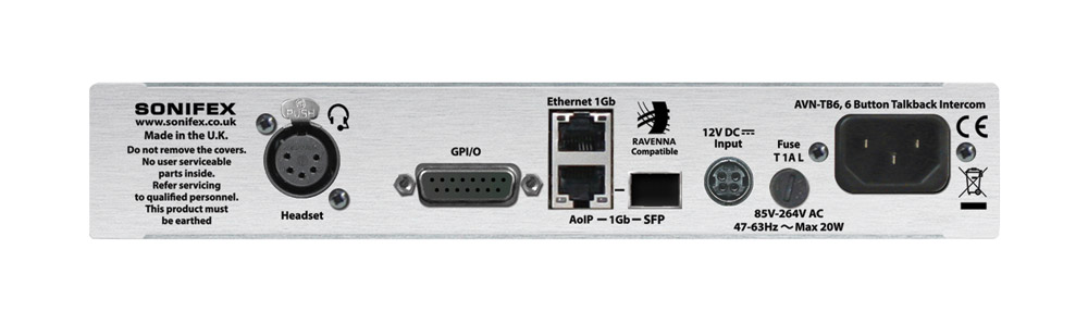 SONIFEX AVN-TB6 INTERCOM TALKBACK 6 touches, AES67 AoIP, autonome Code stock : 95-5901