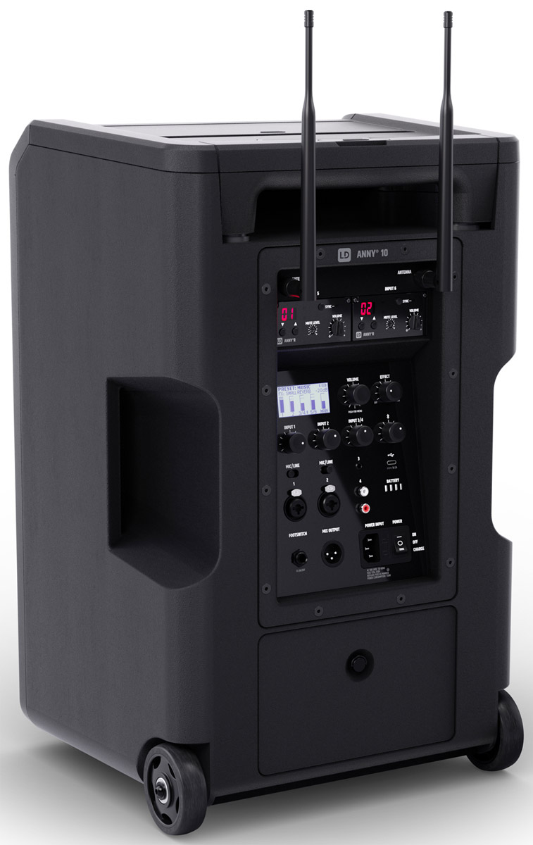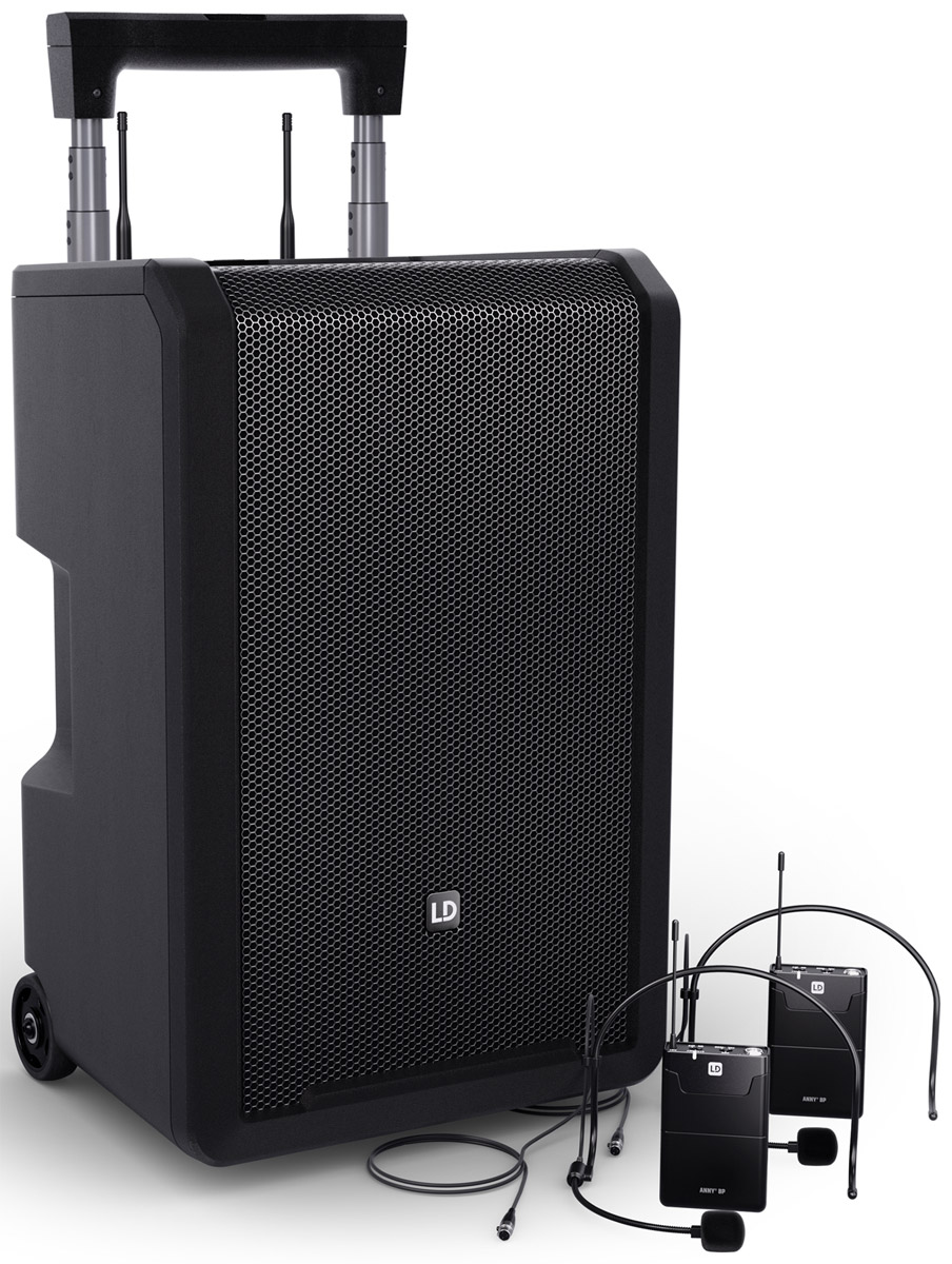 La gamme de produits LD Systems, portables et alimentés par batterie, est fournie avec un émetteur sans fil portable ou porté sur la tête et un récepteur sans fil intégré. Cette gamme permet la lecture de fichiers MP3, WAV et WMA via une connexion filaire, Bluetooth, un support USB ou une carte SD insérée.