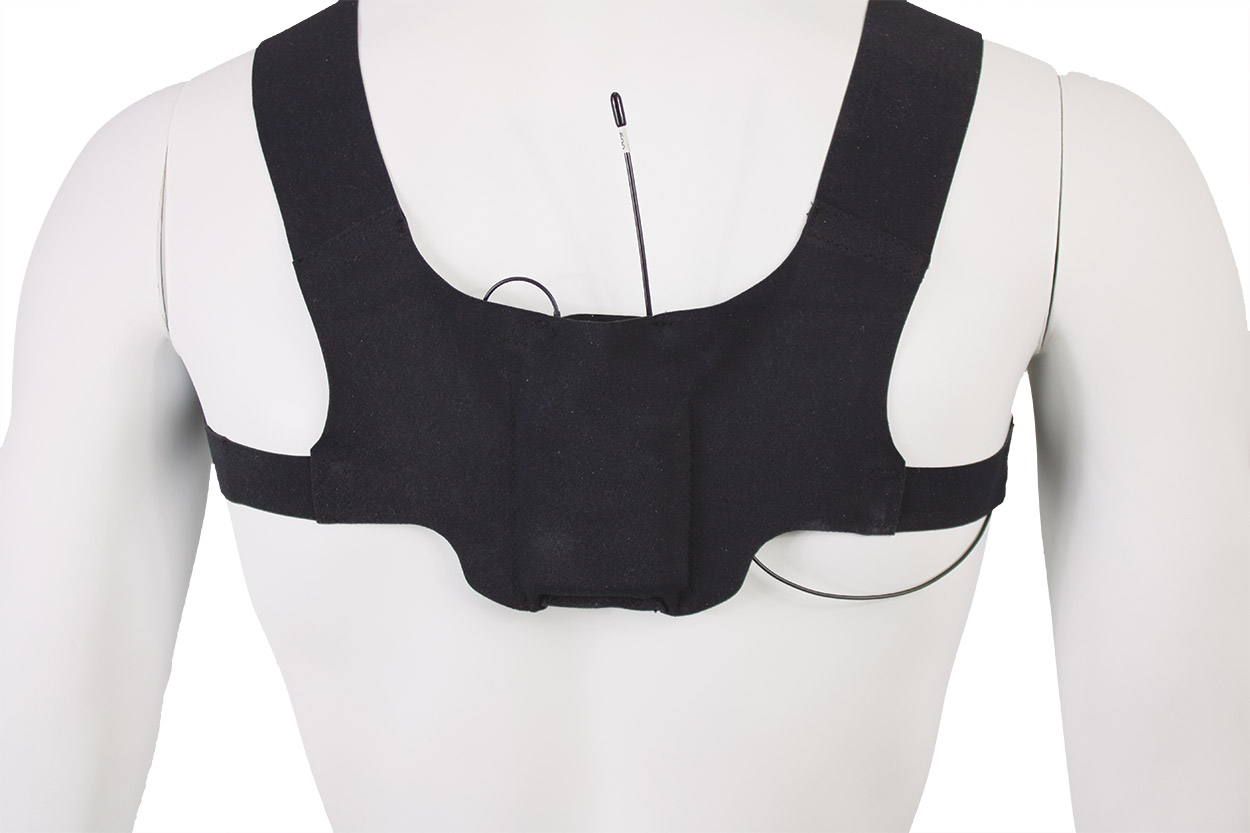 Conçues pour accueillir en toute sécurité les émetteurs de poche sans fil ou les récepteurs d'écoute intra-auriculaires au milieu du dos, entre les omoplates. Ce positionnement permet de dissimuler le pack sans fil et d'améliorer le confort de l'utilisateur. Le pack sans fil peut être positionné avec l'antenne vers le haut ou vers le bas, selon les préférences de l'utilisateur.
