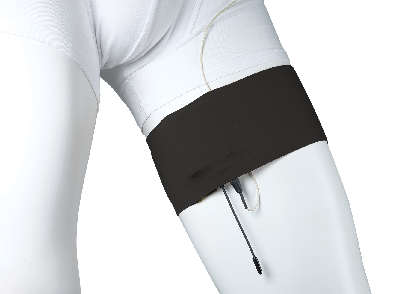 Ces lanières de cuisses sont fabriquées à partir d'un tissu collé de 1 mm d'épaisseur qui permet de fixer la pince à crochet à n'importe quel endroit. Il y a également une pince en polyuréthane qui réduit le glissement sur la jambe. Il a été dit que ces lanières sont extrêmement utiles pour les vidéastes qui filment des mariages et qui ont besoin de placer un micro sur la mariée de manière discrète. La pochette est fixée dans une position qui permet une orientation verticale du pack sans fil. Les lanières de cuisse avec orientation horizontale du pack sont disponibles sur commande spéciale. En plus de la pochette qui contient l'émetteur ou le récepteur, une deuxième pochette à extrémité ouverte permet de ranger le surplus de câble. Les lanières sont disponibles en noir, beige, marron ou blanc, et sont lavables en machine à des températures de 40-60 degrés. Remarque : URSA Straps recommande d'utiliser le système de fixation par crochets pendant le lavage. Le séchage peut se faire par suspension ou au sèche-linge à basse température.