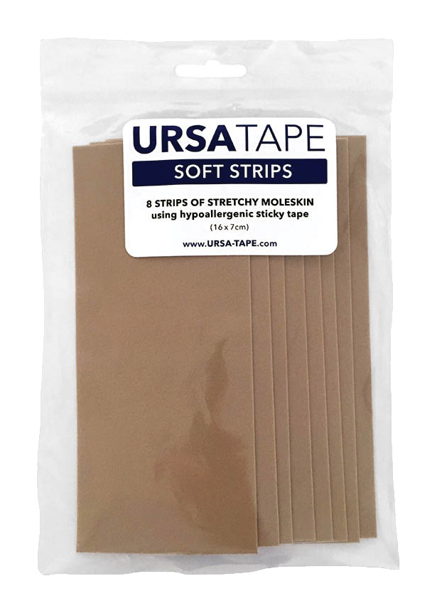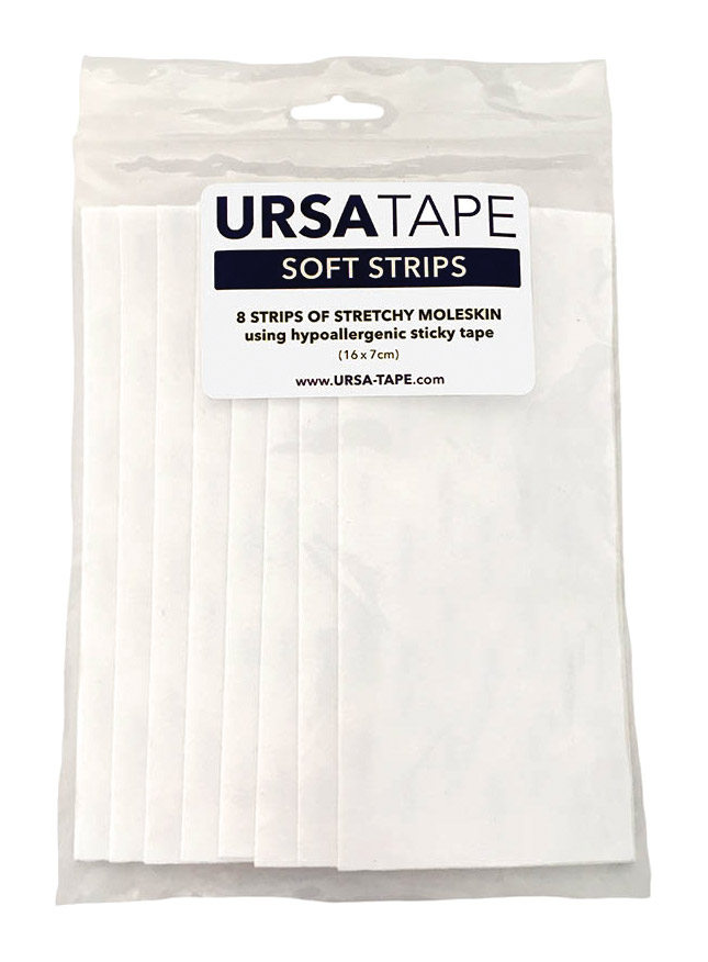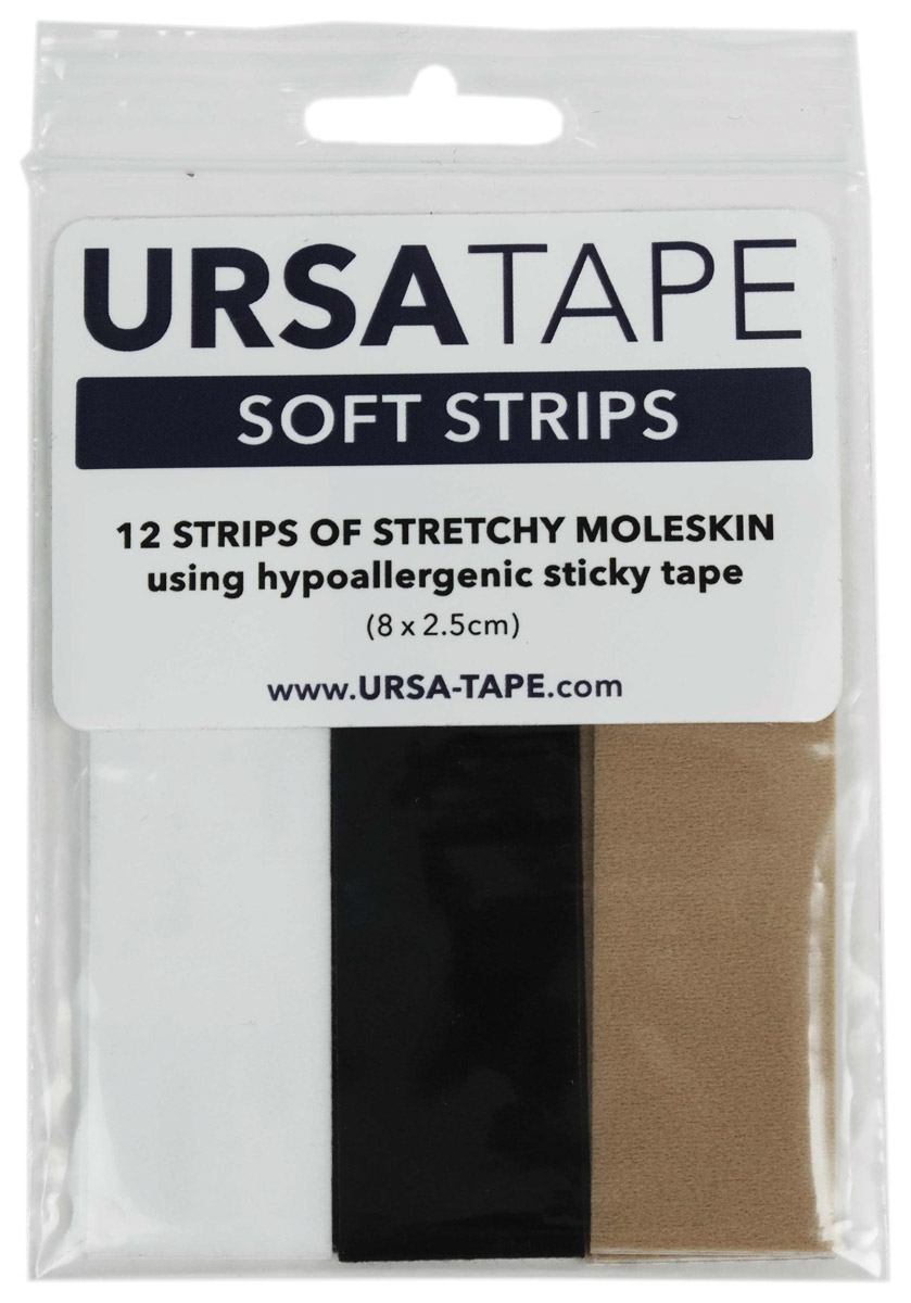 Les bandes URSA sont fabriquées à partir de la même formule adhésive que les cercles adhésifs, mais elles sont prédécoupées en bandes de 78 x 22 mm. Le support fendu, semblable à un pansement, permet une application facile. Les bandes sont hypoallergéniques et peuvent être utilisées en toute sécurité sur la plupart des types de peau. Elles ne laissent pas de résidus sur les costumes et les tissus délicats.