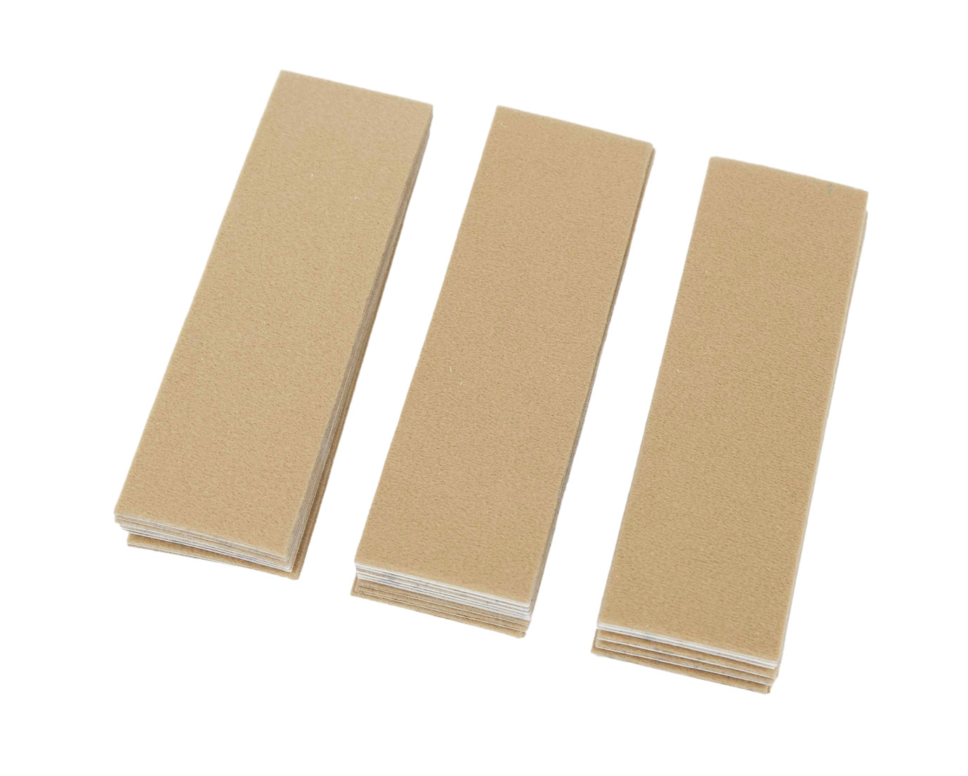 Chacune des bandes mesure 8 x 2,5 cm et est disponible en paquets de 30 pièces en noir, beige, marron, caramel, blanc, vert chromatique et bleu chromatique ; ou en paquets mixtes de 12 pièces contenant 4 bandes blanches, 4 bandes noires et 4 bandes beiges. |