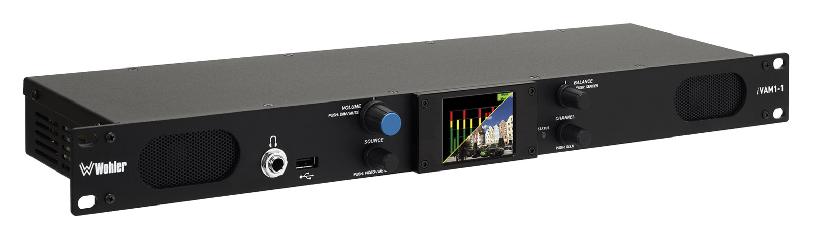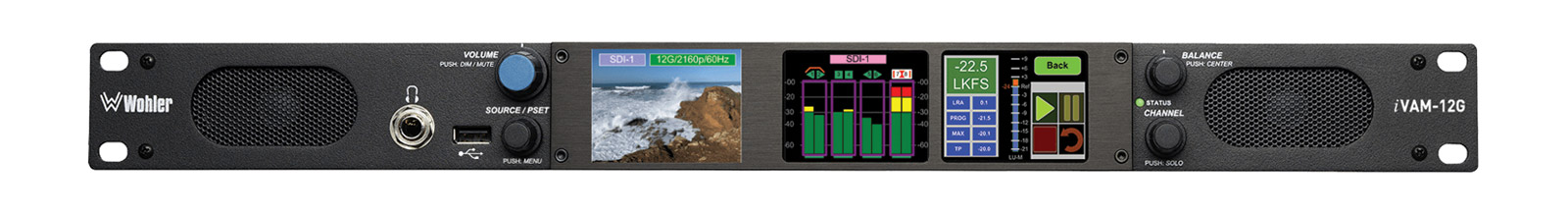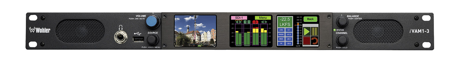 L'iVAM1-12G de Wohler est un moniteur audio/vidéo multicanal multi source 1U doté d'entrées 12G-SDI et analogiques de base. Il dispose de 3 écrans LCD tactiles de 2,4 pouces qui fournissent soit de la vidéo, soit des indicateurs de niveau haute résolution. Tous les canaux (ou paires de canaux) de n'importe quel flux de source audio/vidéo peuvent être contrôlés. Des indicateurs de 8 ou 16 canaux peuvent être affichés.