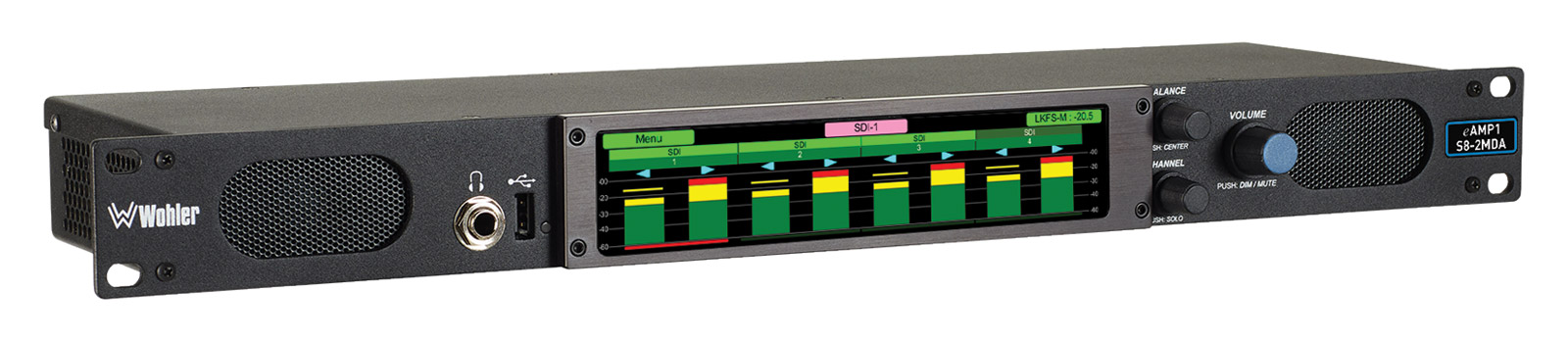 WOHLER EAMP1-S8-MDA MONITEUR AUDIO 8 canaux, 3G-SDI/AES3/analogique, 5W RMS par côté, 1U Code stock : 76-834