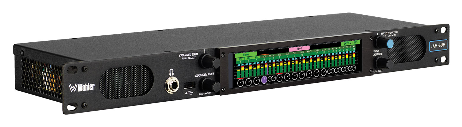 WOHLER IAM-SUM16 MONITEUR AUDIO avec mixage, 16 canaux, 3G-SDI/analogique, 5W RMS par côté, 1U Code stock : 76-852